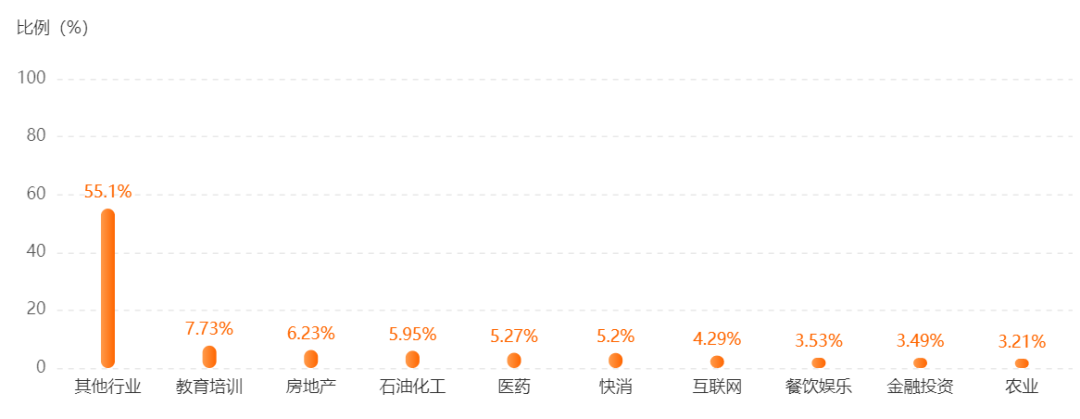 ' _( B _" {; r4 |* m& M 就业行业分布 / j& E! `# x" k( R