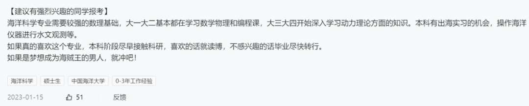目前大多数海洋科学专业的学校按照一级学科招生,少数学校如中国海洋大学、厦门大学等则按照二级学科招生。因此,我们讨论的是海洋科学的整体类别。