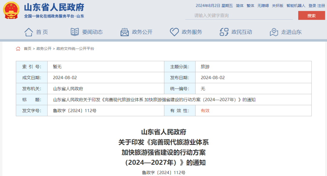 鲁政字〔2024〕112号 * A" b" S: H1 s0 g9 y5 E% x
