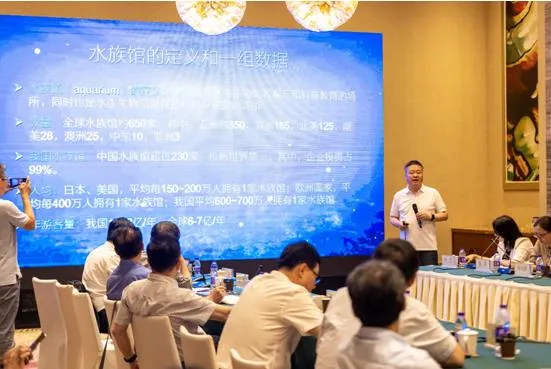 中国科学院水生生物研究所研究员张先锋就我国海洋馆繁育成果及科普教育的重要性进行汇报 为推进全球生物多样性保护,聚焦海洋生态,研究探讨水生生物保护发展,并充分利用和发挥水族馆等社会力量,推进我国水生野生动物保护事业健康发展,研讨会由中国野生动物保护协会水生野生动物保护分会会长李彦亮主持,中国科学院水生生物研究所研究员张先锋、中国野生动物保护协会水生野生动物保护分会秘书长陈芳分别就我国海洋馆繁育成果及科普教育的重要性、我国珍稀特有鱼类保护及保育研究体系建设、成果及应用情况等进行了汇报。会上长隆集团首席动植物官董贵信博士介绍,科学技术普及作为一项基础性社会工程,与科技创新处于同等地位,对于推进生态文明建设有着重要意义。长隆集团通过创建国际领先的野生动物种质资源基地群,研创出野生动物优生优育、精准营养、精准疫病防治和适宜生境维护等四大关键技术体系,有效保护了来自53个国家1200余种10万余只野生动物。此外,长隆集团加强全球野生动物种质资源保护关键技术研究与应用,探索出以文化旅游为平台,“野生动物种质资源基地+科学研究+科普教育+野外救护+野化放归”五位一体的创新发展模式。构建了完备的科普教育体系,累计为3亿人次提供野生动物科普教育和文化旅游。中国科学院院士、水生生物学家桂建芳,中国工程院院士、南方海洋省实验室(广州)主任张偲及30余位与会专家进行了发言讨论,就当前我国海洋生物多样性保护、科学研究及科普教育发展,以及如何更好的利用和发挥好水族馆有利条件,把他们建设成为水生野生动物保护科普教育基地、科研基地、繁育保种基地和救护保育基地,如何打造可复制、易推广的水生野生动物保种和科普推广模式进行了深入探讨,为下一步发展方向积极建言献策。, R: l/ J5 M9 Z. c- j, R