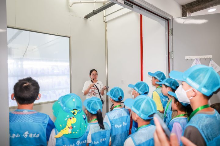 在微藻种质库,科研人员告诉大家,目前藻种库存有700多株微藻,主要分为三大类——甲藻、硅藻和绿藻。“大家知道藻类有什么作用吗?”孩子们争先恐后地回答,有的说可以制作保健品,有的提到可以用于化妆品生产。科研人员继续补充道:“微藻的作用远不止于此,它们拥有强大的光合作用能力,能够高效地吸收二氧化碳,参与生物固碳过程,同时还能净化污染的废水,保护我们的环境。”