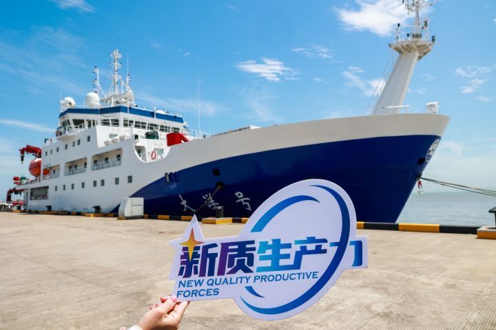 / ?9 }2 g/ R3 {; `# ] f “哇,我第一次见到科考船!上面有好多实验室和设备,科学家们用它们来研究海底的秘密。我觉得特别酷,将来我也想当一个海洋科学家。”从“大洋”号科考船上下来,一个9岁的小姑娘满脸兴奋地说道。19日上午,她和哥哥一起来参加浙江省科协的“走进新质生产力”系列科普活动,这期由舟山市科协和海洋二所承办的活动带着公众走进了“大洋”号科考船。活动一经招募,就点燃了近千组家庭的好奇心与探索欲。