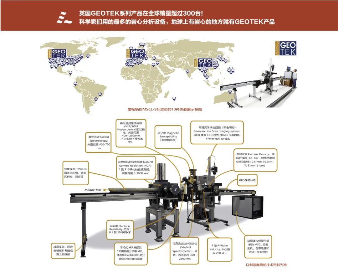 国际畅销的岩芯设备MSCL(Multi Sensor Core Logger岩芯综合测试系统,又称多参数岩芯扫描仪)的设计者和制造商。世界上几乎每个从事岩芯研究工作的实验室(科学研究、工程勘探、石油钻探等)都安装了MSCL,用户超过300个。MSCL性能非常稳定可靠、结实耐用,既适合实验室也适合于野外,已经广泛用于全球各国的岩芯库、地质重点实验室、野外临时实验室、海上调查船、深海钻探船和工程船等。