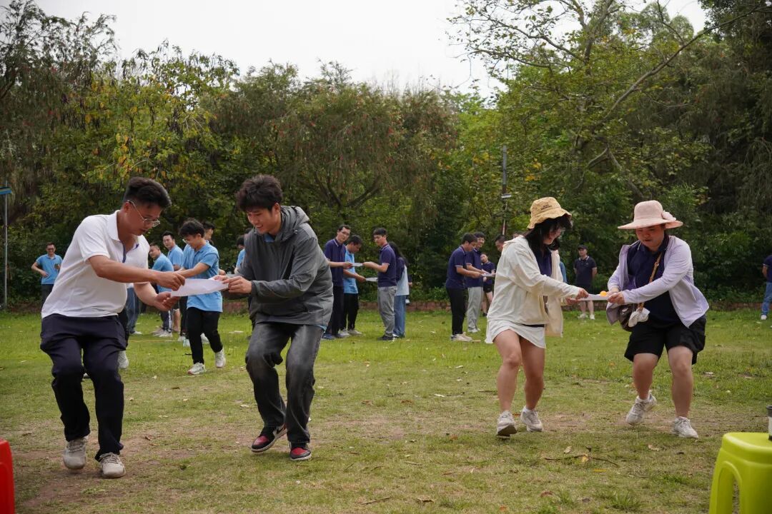 此次团队建设活动共分为专题知识竞赛和户外拓展游戏两大环节。专题知识竞赛采用小组抢答的形式进行,共分为党史党建知识竞赛、保密教育知识竞赛和安全教育知识竞赛三个环节,在突出专业知识的同时,还通过设置不同的抢答方式增添趣味性。竞赛过程中,8个小组的成员踊跃抢答,拼脑力、比反应、配合默契。在户外拓展游戏中,既有促进职工之间交流互动的“桃花朵朵开”和提升团队协作的“乒乓球传递”,又有展现个人风采的“零食套圈”,场上参赛组员们团结协作、奋勇争先,场下“啦啦队”加油呐喊声此起彼伏,现场气氛热烈活跃。 , p, C3 m7 a# \+ p