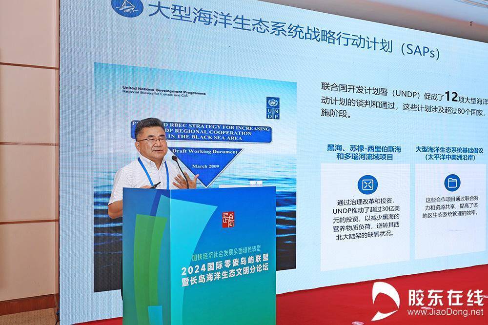 胶东在线8月16日讯(记者 邬勇 摄影 李刚)“2021年,我市提出打造‘长岛国际零碳岛’,组织专家团队进行了科学研究,规划成果在2023年联合国气候变化迪拜大会发布,目标是到2035年长岛全域实现净零排放。”8月16日,2024年全国生态日山东活动暨碳达峰碳中和烟台论坛——国际零碳岛屿联盟暨长岛海洋生态文明分论坛在烟台国际博览中心举行,烟台市副市长张志新在致辞中说,“我们正在争取在今年联合国气候变化 COP29大会期间举办国际零碳岛屿建设边会,共同发布成立‘联盟’国际倡议。真诚希望各方支持联盟建设、参与联盟事务,共同谋划和推动零碳岛屿发展。” 4 |2 C) C' c6 S. |+ e
