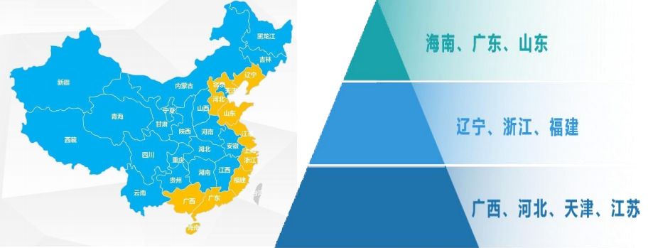 # J" X- l" |0 k' Z- M: @ 我国管理海域、海岸线、砂质海岸、基岩海岸、海岛等综合发展指标遥遥领先,海旅资源良好。根据海旅资源的分布情况,可将我国十一个沿海省市海洋旅游发展潜能分为三大梯队:第一梯队为海南、广东、山东;第二梯队为辽宁、浙江、福建;第三梯队为广西、河北、天津、江苏。 % n' C' F d/ e% E4 {6 o2 M' X