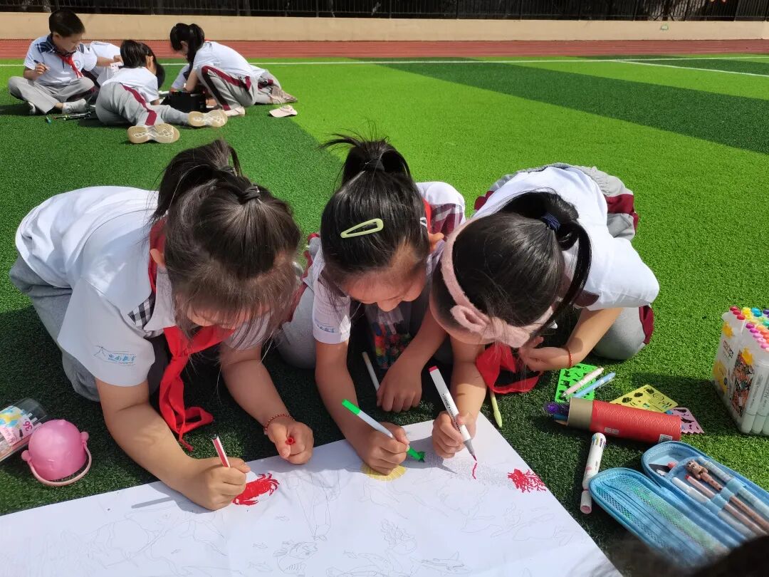7 L0 S0 Q O3 Y 其他同学们还在老师的指导下开展了海洋动、植物研究性学习及海洋科普文绘活动。活动中,同学们充分发挥想象力与创造力,既有分工也有合作,颜色搭配和谐美观,通过文绘创作活动更激发了同学们对海洋的热爱。