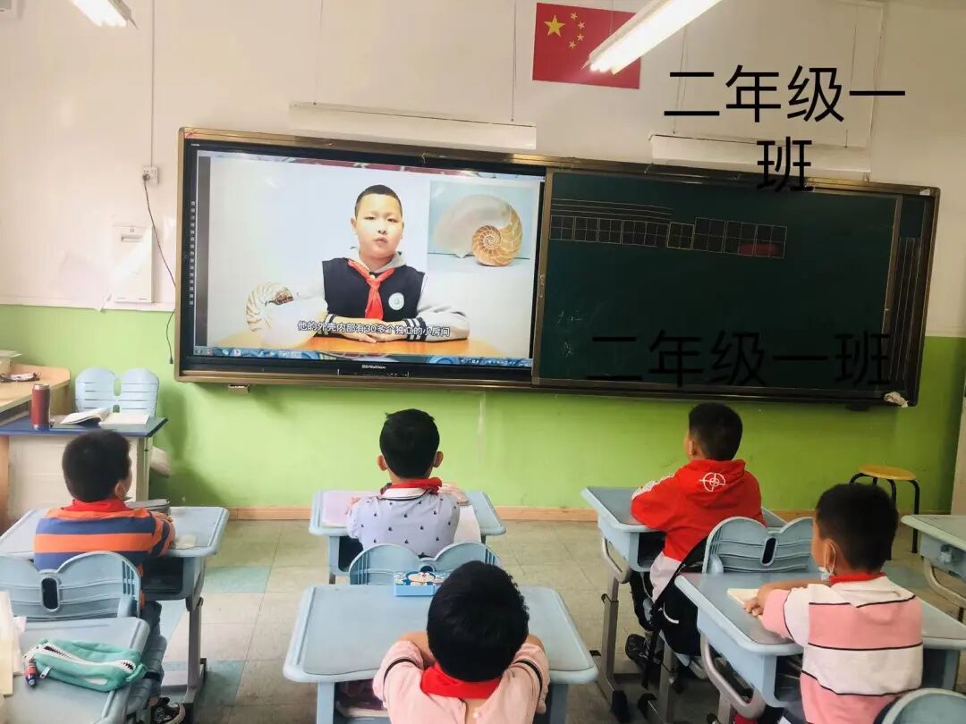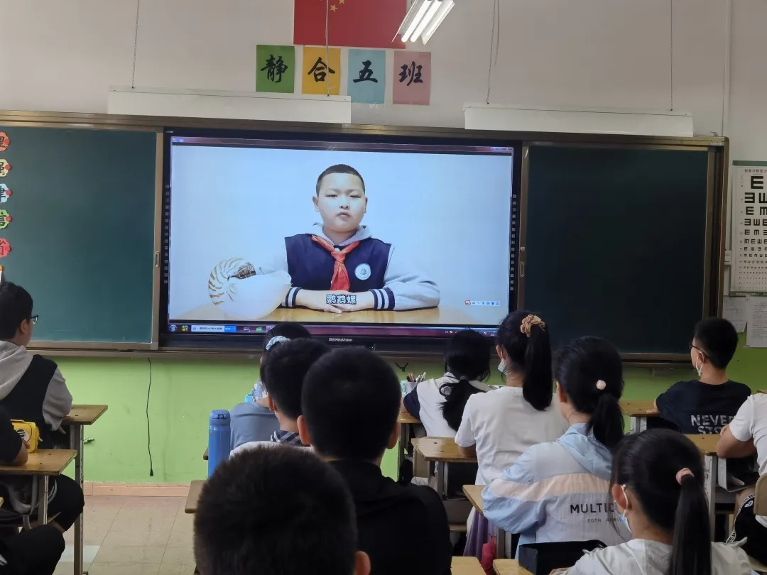 , Q1 L. O( S% x 学校海洋科技讲师团的小讲师马浚凯同学通过线上向全体学生展示了自己海洋项目式研究成果,讲述了凤凰螺的特征和习性,向同学们讲述了保护海洋生态系统、人与自然和谐共生的重要性。