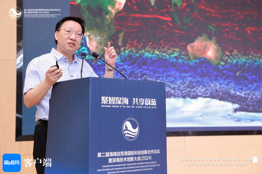 & K$ h3 i1 P- V( {7 b 南海网8月24日消息(记者 利声富)23日在三亚举行第二届海南自贸港国际科技创新合作论坛暨深海技术创新大会上,中国科学院院士、崂山实验室主任吴立新应邀演讲,为中外嘉宾解码“透明海洋”和海洋新质生产力。