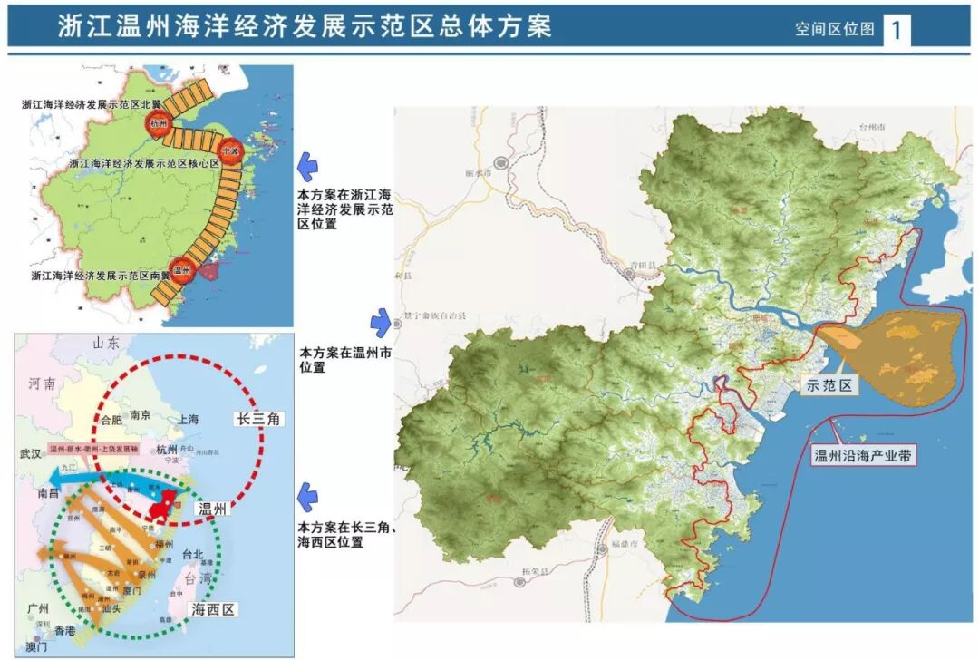 0 E, G A+ z( w" S 海洋经济发展示范区将如何建设?具体如何规划布局?小布带你了解—— 浙江温州海洋经济发展示范区 温州东临东海,是我国联接长江三角洲和海峡西岸经济区重要节点城市,是浙江省三大中心城市之一。 温州区划海域总面积8649平方公里,海岸线总长1171公里,海岸线长度约占全省17.7%,拥有海岛711.5个。