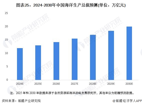 据自然资源部海洋战略发展研究所预测,中国海洋生产总值2025年将达到13万亿元,直至2030年之前,中国海洋经济将一直处于成长期。2030年我国生产总值将超过20万亿元,海洋生产总值占GDP比重有望超过15%。 : X& W& |/ X ?* b