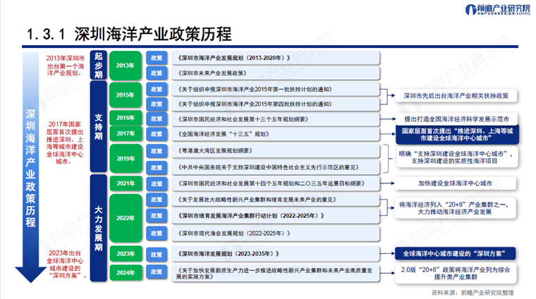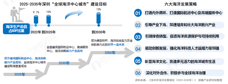 2023年5月,《深圳市海洋发展规划(2023-2035年)》的印发确定了全球海洋中心城市建设的“深圳方案”,设定2023-2035期间总目标,3个成“形”阶段目标、六大策略、多种保障等,推进建成具有竞争力、创新力、影响力的全球海洋中心城市。