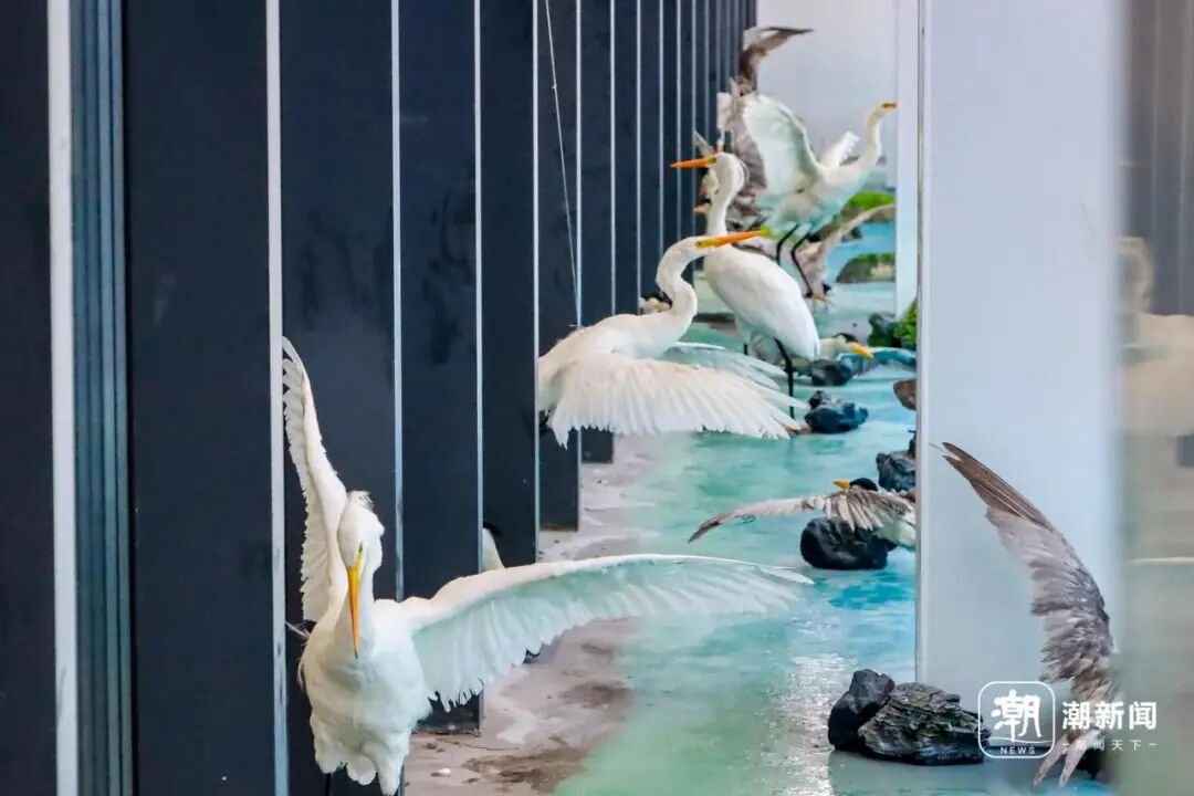 : Z& t: d/ K, h) z7 U 8月10日上午,全省唯一的海洋鸟类科普展示馆在舟山定海开馆。馆体复刻全省唯一的鸟类省级自然保护区——五峙山列岛鸟类省级自然保护区,馆内设有介绍海洋鸟类的展板区域、互动式体验的AR、VR区域,沉浸式观鸟的360°环幕系统、珍稀的“神话之鸟”中华凤头燕鸥雏鸟标本。馆外,另设逼真的鸟蛋模型、群鸟栖息的“鸟鸣涧”造景,惹得造访者连连拿起手机留念。