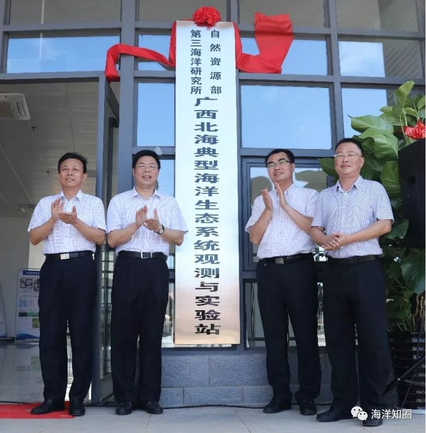 2019年6月28日上午,由自然资源部第三海洋研究所与北海海洋产业科技园区合作共建的“自然资源部第三海洋研究所广西北海典型海洋生态系统观测与实验站”揭牌成立。海洋三所陈彬副所长主持揭牌仪式,广西自治区北海市李克纯副市长、自治区海洋局张光忠副局长,北海海洋产业科技园区管理委员会叶海源主任,海洋三所蔡锋所长共同为该站揭牌。