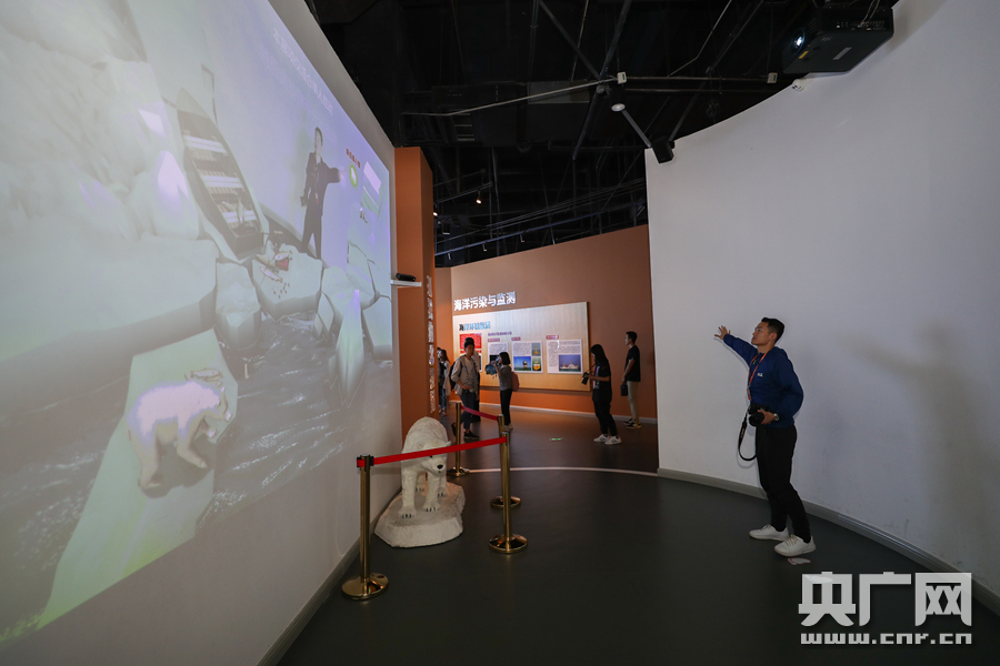 ' @: ?6 a; i( G; r4 ?" a* \9 i2 \ 记者正在参观海洋生物标本。(央广网记者 韩靖摄) # B' p3 H0 F# A8 O& X( C