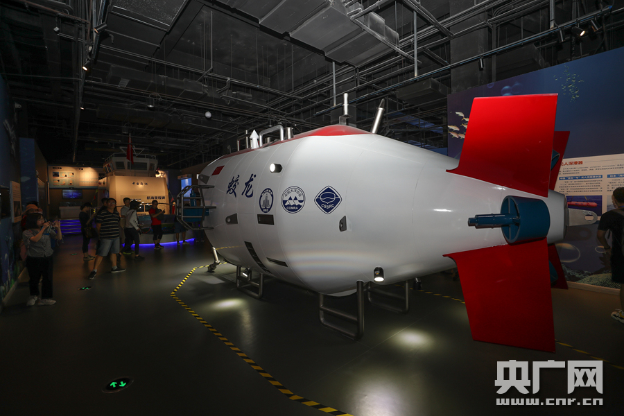 r- u% t# R" T0 b' Y- `' S 科普馆内的蛟龙号模型。(央广网记者 韩靖摄)