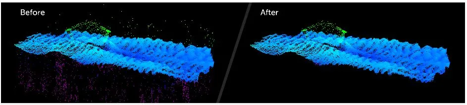 Teledyne CARIS团队于2020年首创了智能化自动过滤噪点的工具CARIS Mira AI Noise Sonar Classifier,以下简称NSC,借助最新人工智能技术,大幅提高了用户数据处理噪点的工作效率。CARIS NSC可以基于云的平台,以亚马逊网络服务(AWS)为基础,提供了一个稳定、可扩展的云平台,无需额外的桌面硬件即可将用户数据转移到处理中。为了避免用户担心数据安全,也可以应用在本地设备上处理。