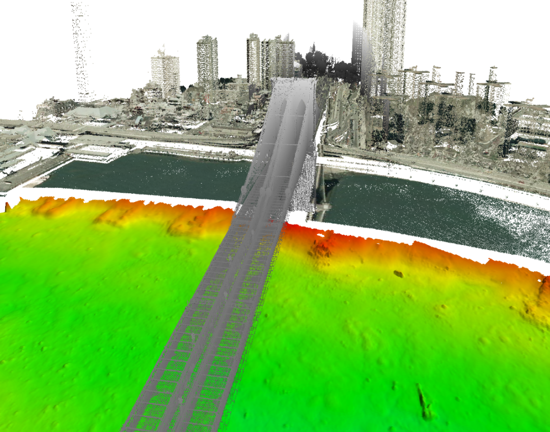 : H4 Z0 Y( F0 w; i ● 使用模型创建基础结构(如码头墙)的光栅曲面表示,以检测变形;