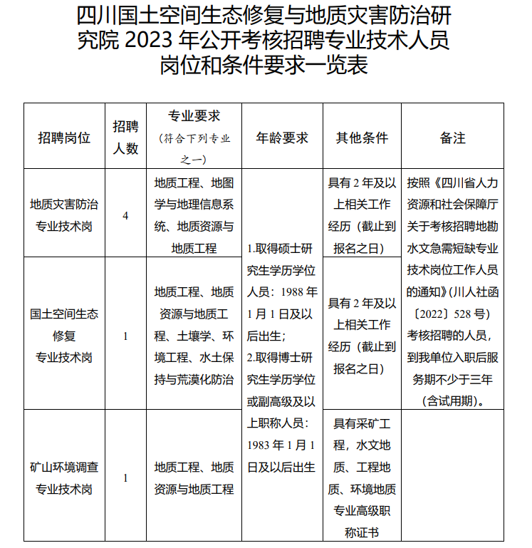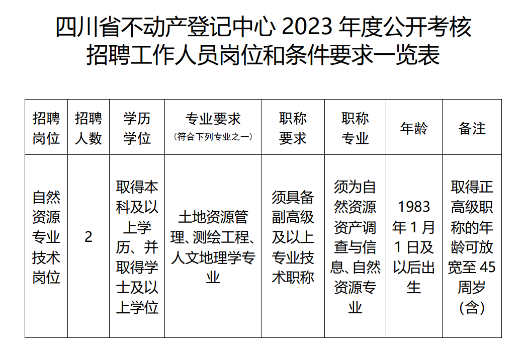 9 U& @5 Y( q7 z' W1 j 四川省自然资源厅下属事业单位四川省国土整治中心、四川省不动产登记中心(四川省地政地籍事务中心)、四川省国土空间生态修复与地质灾害防治研究院、四川省国土科学技术研究院(四川省卫星应用技术中心)面向社会公开招聘。 / h( [8 o: E- P- t+ {' l