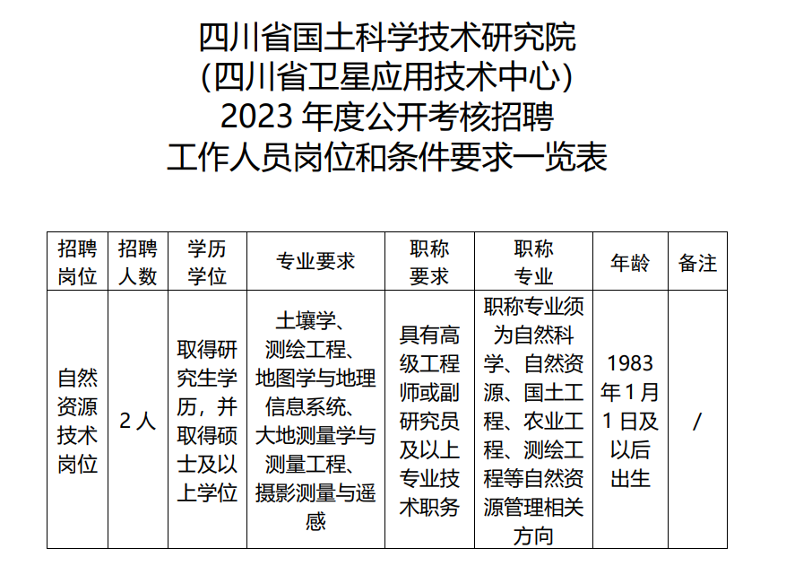 招聘土地资源管理、土地资源利用与信息技术或地理国情监测专业1人,招聘城市规划或城乡规划专业1人,具有全日制大学本科及以上学历,年龄30周岁以下;