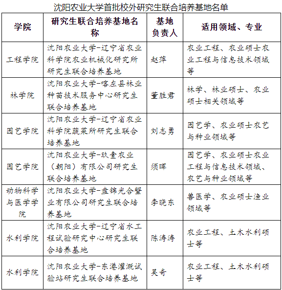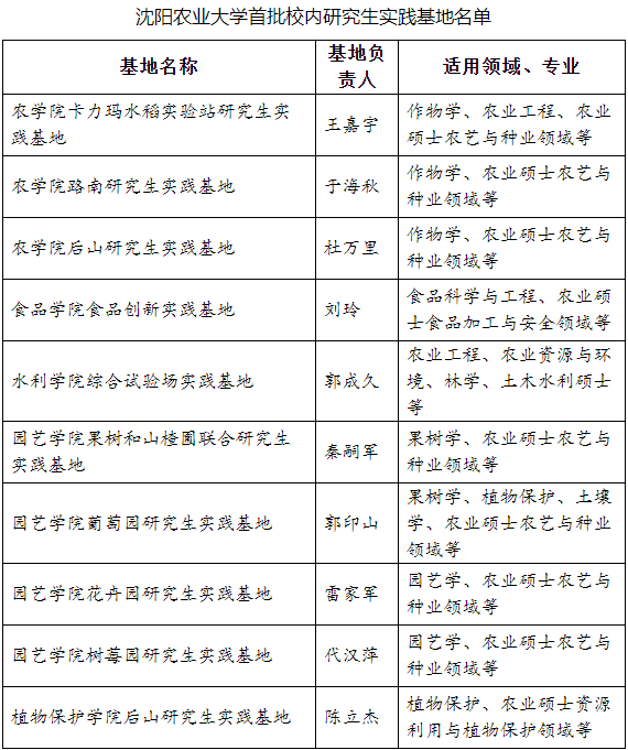 # V1 X& v+ D4 M3 l 今年,学校按照《沈阳农业大学研究生联合培养基地管理办法》,启动研究生实践基地申报工作,邀请校内外专家对申报的基地进行实地考察、评估,最终评选出农学院卡力玛水稻实验站研究生实践基地等10个校内研究生实践基地和沈阳农业大学——辽宁省农业科学院农业机械化研究所研究生联合培养基地等7个校外研究生联合培养基地,并给予共25万元的经费支持。 4 b3 W0 C0 F: K