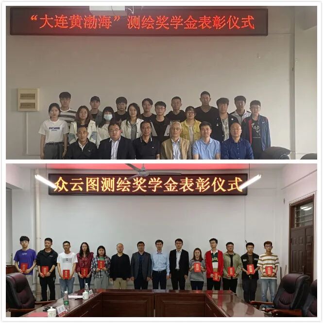 " p+ U9 _, v9 W' q5 T2 b& a7 v 5月份,测绘学院在玉龙校园慧和楼先后举办了两项奖学金的表彰仪式,奖学金设立单位大连黄渤海海洋测绘数据信息有限公司董事长蓝海、沈阳众云图测绘科技有限公司总经理幺术龙、副经理王学亮亲自来到学校参加表彰仪式并未获奖学金颁奖,学院党政领导、辅导员、获奖学生以及各年级学生代表出席表彰会,表彰会由学院学工部主任张光磊主持。 ( b8 ^6 b' G( \