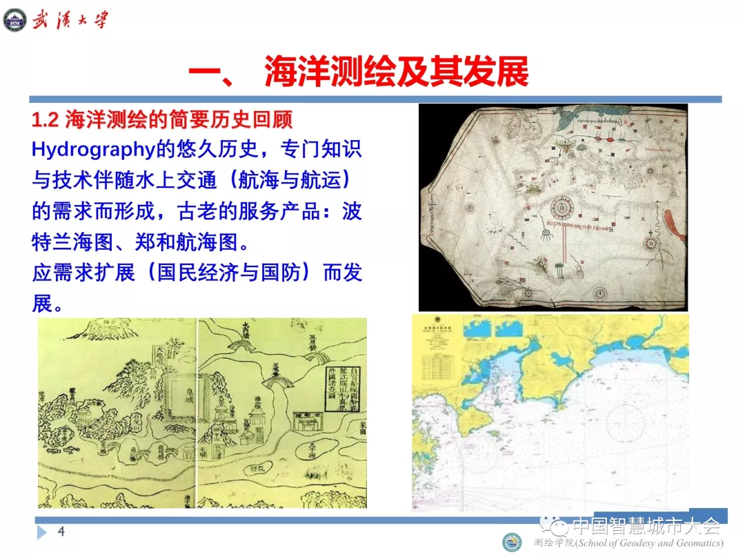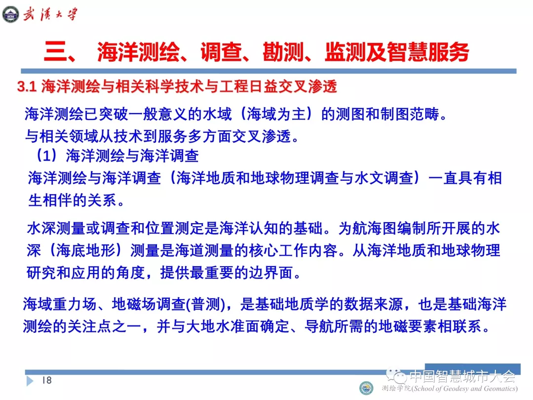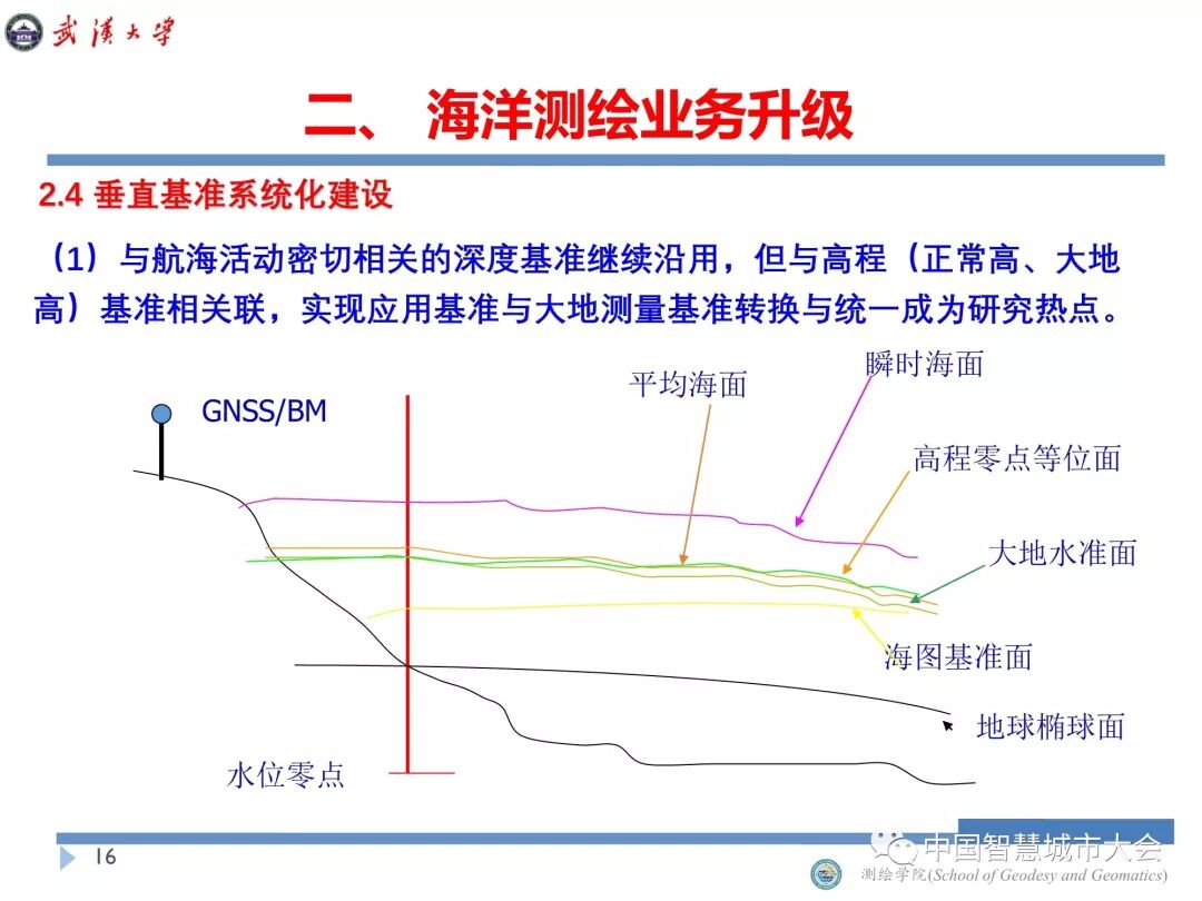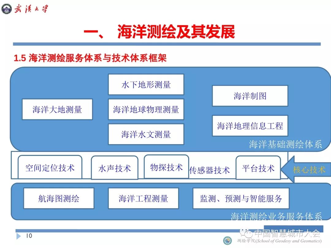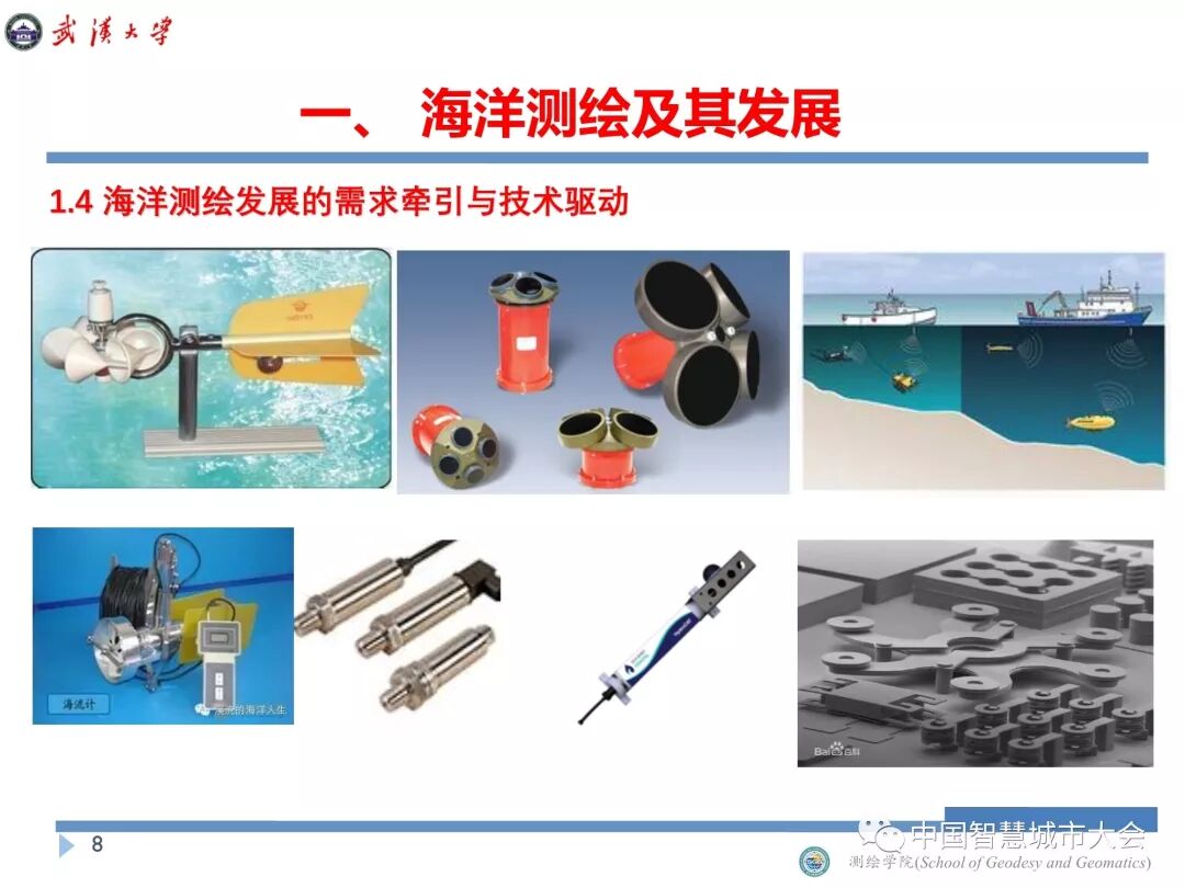 更多精彩,请点击上方蓝字关注我们!中国智慧城市大会智慧海洋分论坛演讲PPT集锦暴景阳 :教授 博士生导师现任武汉大学海洋研究院教授,曾任海军大连舰艇学院教授演讲题目:《海洋测绘及其智慧海洋建设服务》演讲人介绍:1987年7月毕业于海军大连舰艇学院海道测量专业,获学士学位;1993年7月毕业于海军大连舰艇学院海洋测量学科,获硕士学位;2002年12月,毕业于武汉大学大地测量与测量工程学科,获博士学位。从事海洋测绘教学与研究,特别是在海洋测绘垂直基准、海洋潮汐理论与测绘应用等。曾主持各类科研项目和国家专项建设任务30余项。发表学术论文170余篇,出版著作5部。参与《中国大百科全书》、《测绘词典》、《海洋测绘词典》等辞书涉及海洋测绘有关条目的撰写。国标《海道测量规范》主要修订人之一,能源行业标准《海上风电场工程测量规范》主审。获国家科技进步二等奖1项,军队科技进步奖8项,国家行业学会科技进步奖6项。获中国测绘学会海洋测绘专业委员会首届海洋测绘学科发展突出贡献奖、军队院校育才奖银奖、海军优秀党员等个人奖励或表彰。现任中国测绘学会大地测量与导航专业委员会委员、中国海洋学会海洋测绘专业委员会委员、中国海洋发展研究会海洋勘测与地理信息产业研究分会副理事长。                    fill=%23FFFFFF%3E%3Crect x=249 y=126 width=1 height=1%3E%3C/rect%3E%3C/g%3E%3C/g%3E%3C/svg%3E)  fill=%23FFFFFF%3E%3Crect x=249 y=126 width=1 height=1%3E%3C/rect%3E%3C/g%3E%3C/g%3E%3C/svg%3E)  fill=%23FFFFFF%3E%3Crect x=249 y=126 width=1 height=1%3E%3C/rect%3E%3C/g%3E%3C/g%3E%3C/svg%3E)  fill=%23FFFFFF%3E%3Crect x=249 y=126 width=1 height=1%3E%3C/rect%3E%3C/g%3E%3C/g%3E%3C/svg%3E)  fill=%23FFFFFF%3E%3Crect x=249 y=126 width=1 height=1%3E%3C/rect%3E%3C/g%3E%3C/g%3E%3C/svg%3E) % n3 ~" ^3 \8 \* o+ l, c