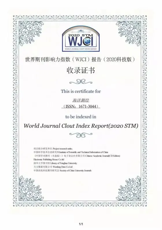 相关阅读推荐 海测论坛▏2021年《海洋测绘》论文综述海洋论坛▏2020年《海洋测绘》论文综述海测论坛▏从《海洋测绘》创刊四十年载文分析中国海洋测绘研究特征喜报▏《海洋测绘》期刊被评为“双核心”期刊新闻追踪▏《海洋测绘》期刊收到《世界期刊影响力指数(WJCI)报告(2020科技版)》收录证书溪流笔谈▏改革开放四十年:海洋测绘追梦者素描   % b7 f. h% o/ D# k0 b0 \* Y. F& j" z