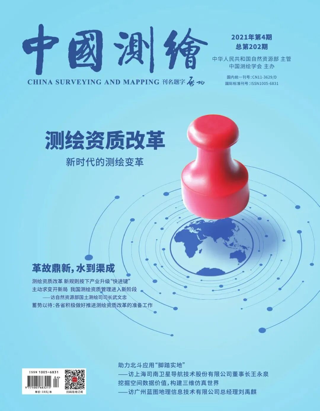 《中国测绘》杂志是由国家新闻出版总署批准,中华人民共和国自然资源部主管, 中国测绘学会主办的国内外公开发行的国家级期刊测绘科学与技术类学术期刊。  测绘学报02