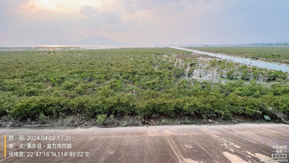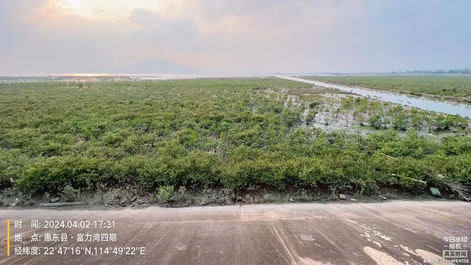惠东县范和港大埔屯海岸带生态修复项目在实施过程中充分考虑修复区域内地势、高程、环境气候以及水文动力等特点,选取适宜树种进行搭配种植,取得了良好的红树林修复效果。目前,该修复区域内红树长势旺盛,健康状况良好,植被密度、覆盖面积、郁闭度均较高,已初步形成稳定的湿地生态系统,显著提升了该区域生物多样性保护成效。 ; n, X Y2 i! c4 f3 F" K