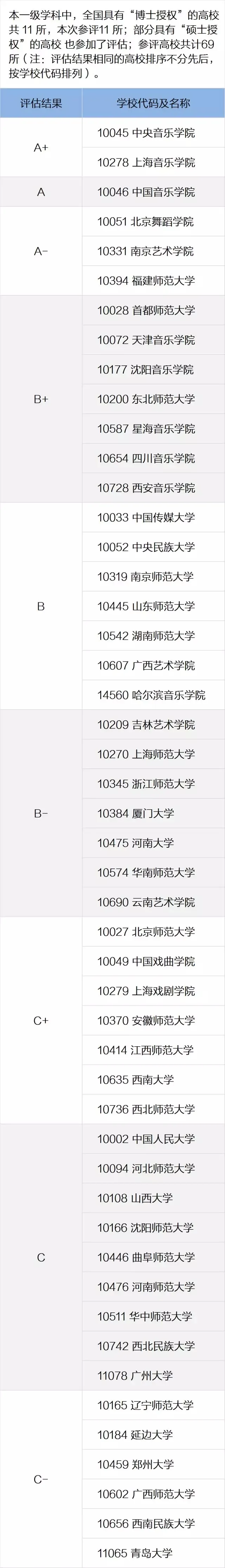 教育部第四轮学科评估 考研院校排行榜音乐与舞蹈学