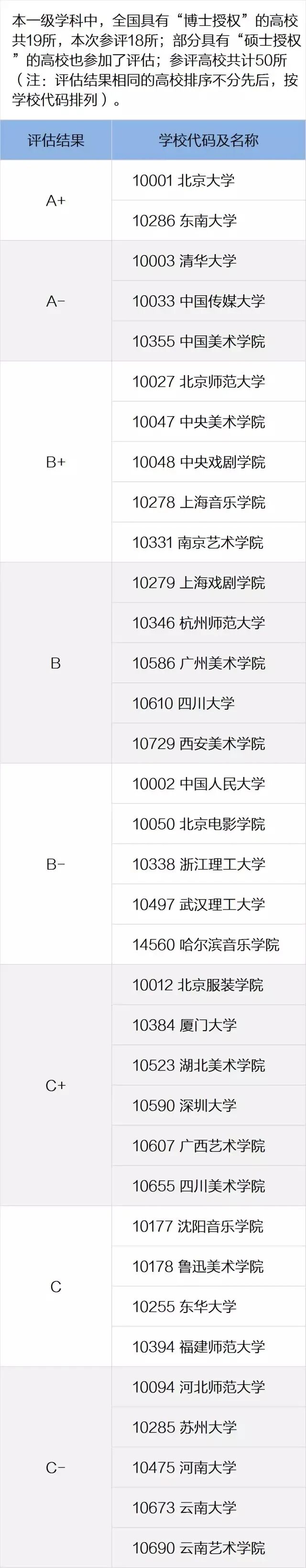 - F5 w) q, d3 u" C$ H% [% V* W 教育部第四轮学科评估 考研院校排行榜艺术学理论; B- ?, v( |" y" F