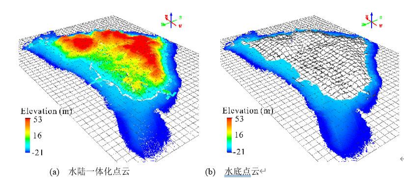 通过点云分类可同时得到陆地与水下激光点云。在此基础上,可进一步得到精确的水陆数字地形产品,水深数据产品等。 3 L7 m S- Y; t" B0 ~