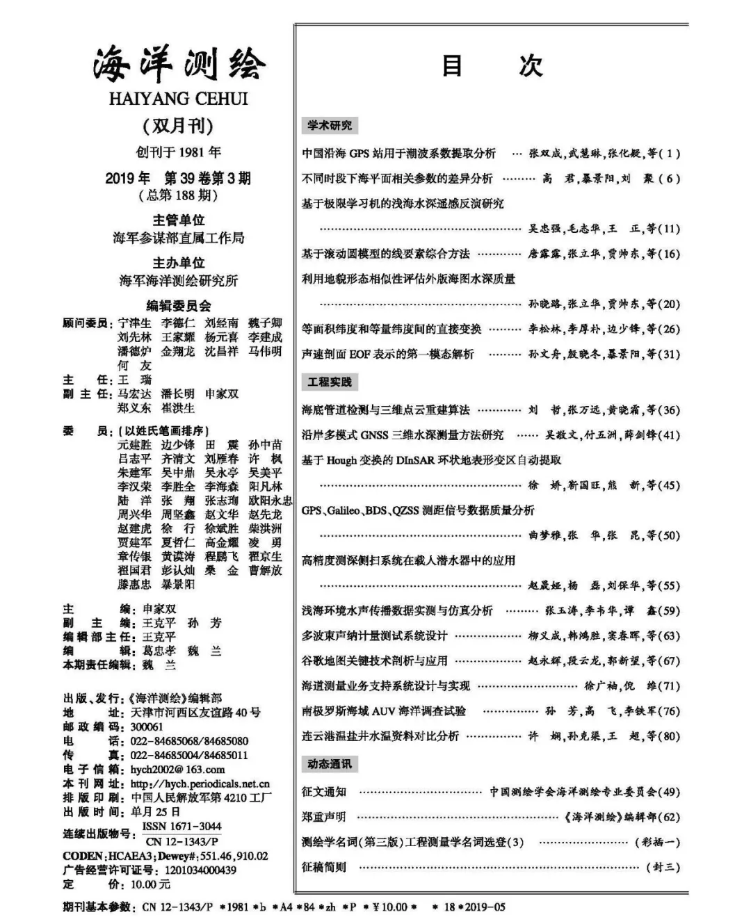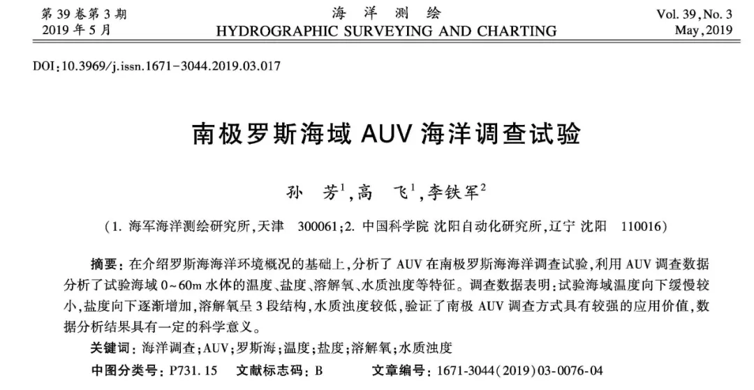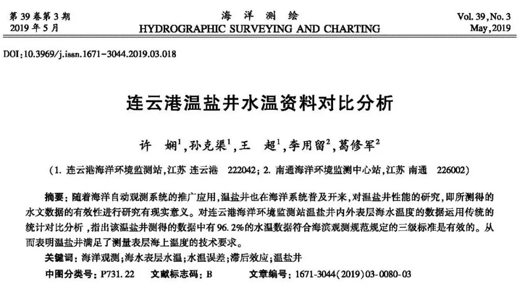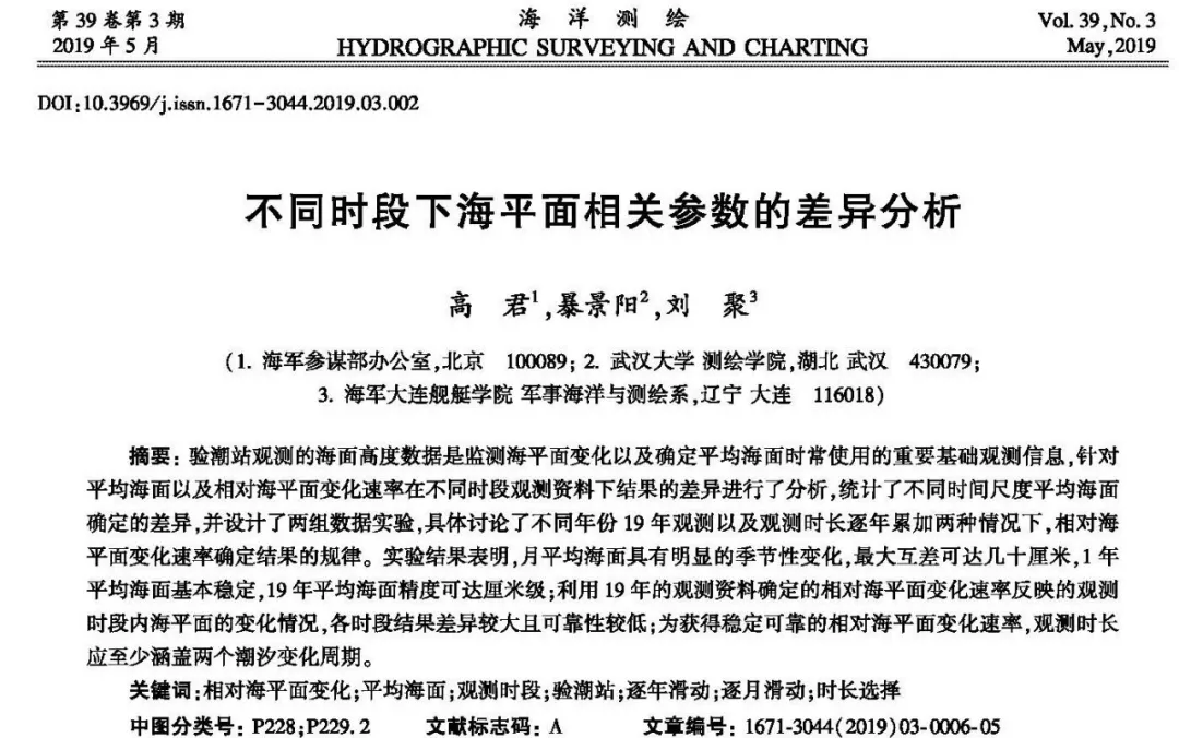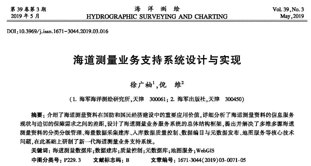 9 O- S* S: O9 l* C3 l- y9 j 《海洋测绘》2019年第1期,精彩内容抢先看!