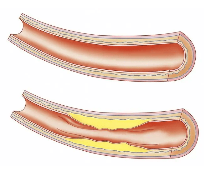 正常的血管内壁光滑有弹性输送血液能力很强。如果存在危险因素,如高血压、高血糖、吸烟等,会让血管内壁变得坑坑洼洼,血脂、胆固醇会趁虚而入沉积在这些小坑里,经过长时间沉淀,就形成了向血管内凸出的斑块。 , v; w( }9 S4 X. C1 r/ E9 x
