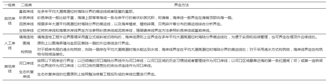 $ s! d6 |% }; ~ 表1《全国海岸线修测技术规程》规定的海岸线分类体系和界定方法 3 f8 z& s' a: c5 M