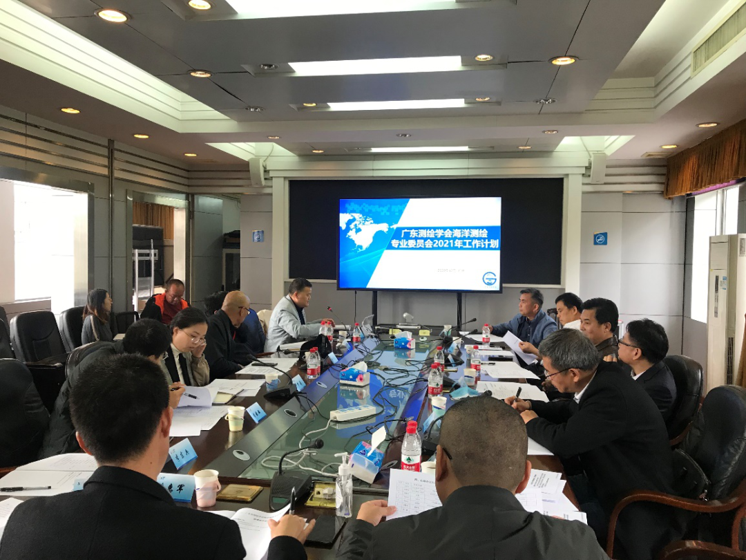 3 c3 U& s, \" y4 a 12月26日,广东省测绘学会海洋测绘专业委员会主任委员工作会议在南海调查技术中心召开,广东省测绘学会理事长、广东省国土资源测绘院院长刘小丁,广东省测绘学会秘书长唐力明及特邀专家莅会指导。自然资源部海洋环境探测技术与应用重点实验室、广东省国土资源测绘院等10家单位的16名代表出席了会议。