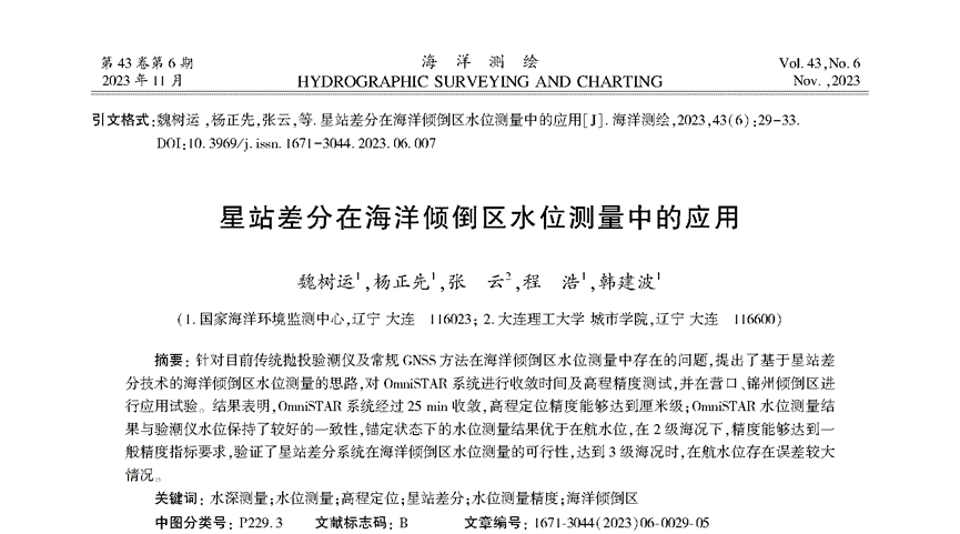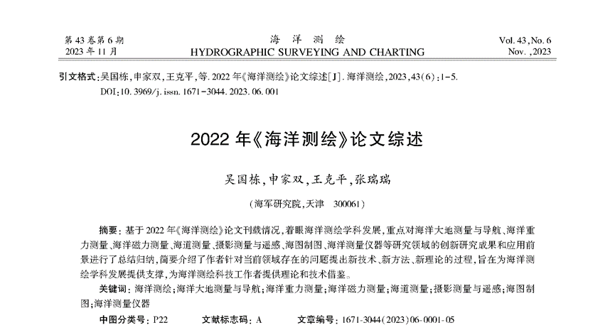《海洋测绘》2023年第4期,精彩内容抢先看!
