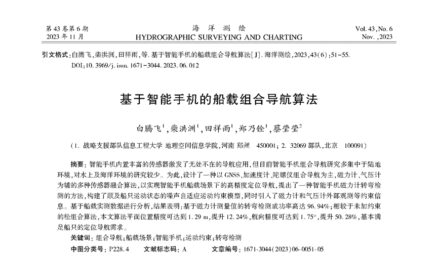 9 z8 o+ }7 {5 q; K 《海洋测绘》2023年第5期,精彩内容抢先看! ' D1 {6 R5 \2 a8 R1 c6 R8 p/ K, S
