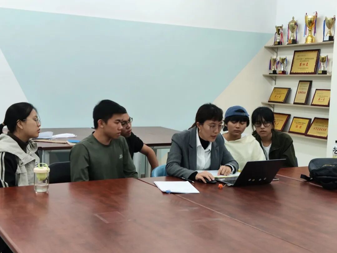 8 y# S7 w9 F; m% M 罗靓博士辅导学生职业技能大赛