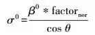 式中,a为最大坡度角;a1为距离向坡度角;a2为方位向坡度角。推导后其关系为:tan2a=tan2a1+tan2a2。为了消除面积效应,对灰度图像乘以规则化散射因子,其因子为