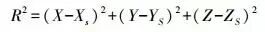 ' g2 b# y0 l; {! S5 Y Z)之间的关系,由此得方程:式(1) 为(X Y Z)需满足的椭球方程;式(2) 为卫星位置矢量与目标矢量满足的距离方程;式(3)