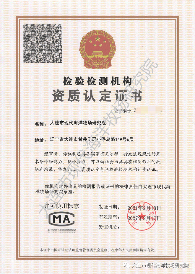 点击上方"蓝字"关注我们吧! 近日,我院海洋生态实验室喜获国家检验检测机构资质认定证书(CMA),此次实验室资质的获批,标志着我院将为全国海洋生态环境监测提供更加科学、专业、权威、系统化的检测服务。 5 y$ b6 e# S+ V! V4 l* ~7 O* @