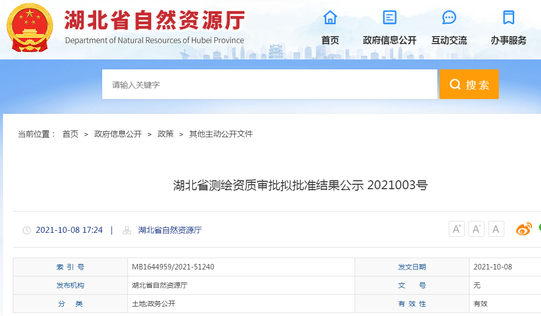 原标题:湖北省自然资源厅:省测绘资质审批拟批准结果公示 来源:湖北省自然资源厅网站 , C' F/ X( v+ |4 v