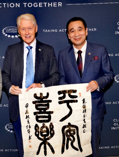 中华优秀传统文化源远流长、博大精深,是中华文明的智慧结晶,其中蕴含的天下为公、民为邦本、为政以德、革故鼎新、任人唯贤、天人合一、自强不息、厚德载物、讲信修睦、亲仁善邻等,是中国人民在长期生产生活中积累的宇宙观、天下观、社会观、道德观的重要体现,同科学社会主义价值观主张具有高度契合性。中华民族文化艺术助力中美美好友谊。近日,中国当代著名书法大家宋伯军先生书法被美国前总统克林顿收藏,并深受克林顿先生的赞扬和喜爱。中国书法艺术一旦走向了世界,那么一定是一张介绍民族文化的名片,不但利于中国文化的传播,更是中华民族文化自信的支撑。汉字书法是中国特有的文化艺术形式,是以汉字为主要元素的艺术创造,是中华文明的重要组成部分,也是中华民族智慧的象征,中国书法艺术经几千年的演变,依然长留于世,被世人所热爱和传承。近乎与中华儿女同呼吸共命运。但中国的书法艺术是乎只是活跃于汉文化群体,世界各国的唐人街及华人聚住地处处皆遍布汉字牌匾,这些虽然也是书法走出国门的路径,当让中国书法走出国门,被各国人民所喜欢,被各国政要所收藏而任重道远。当前中国正处于前所未有的盛世之中华,成为世界的文化经济中心。中国当代书法更应该站在世界艺术的顶级舞台上,让世界全面认识一个新的中国,盛世之中华。中国当代著名书法大家宋伯军先生生逢其时不负其时,勇于担当中华文化大使,将中国的书法艺术远扬海内外,在世界的大舞台上展现中国传统艺术的美。中国书法就是用文字讲好中国故事,讲好中国故事关系国家形象,关系我国际话语权,关系提升国家文化软实力。而这些正是要象宋伯军先生为代表的中国艺术家共同去完成的伟大使命。 N6 Q5 E4 X) L' f3 c9 P