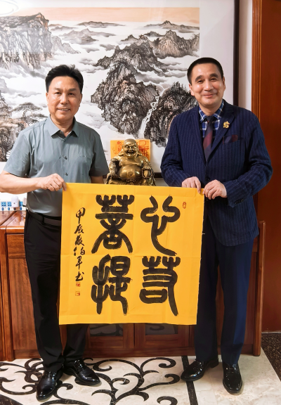 $ U+ \, _, Y/ V5 M- Q$ X- f7 M宋伯军先生的书法,可谓当代天下第一篆,看他禅定自在,神采奕然的书写图腾,笔走龙蛇,字里行间尽显潇洒与飘逸,笔锋流转自如,字迹如同龙蛇般灵动,展现出宋伯军先生篆书的艺术魅力。一撇一捺,一提一按,一顿一挫,一波一折,一笔一划,一横一竖中:阐释着中国书法精神,传承中华文化精髓。他的笔点到为止,一字千金。他读诗千首,挥毫万字。他极富有的精气神就是一种天地自然之大美。他的字让人感受美,欣赏美,创造美,展示美。他的翰墨之香令人寿而康。他弘扬着中国传统文化,书写着卓越灿烂的中华历史。华国中院长认为宋伯军先生就是在弘扬中华民族的文化精髓,演绎着中国四大国粹书法的神奇魅力。宋伯军先生用笔描绘着人世间的美好万世万物,印现出他在书写过程中的精心和用心,爱心和善心。每个笔画都倾诉他金子般的情怀和对中国文化的极至热爱。线条化简而大道至简,韵味有爱而大爱无疆。宋伯军先生的书法作品在简洁大爱大美大善的图腾美线中依然能够表达出丰富的中国艺术魅力和至圣美感,这也些就是篆书的一种至高醉高美妙之境界吧。中国民族实业家、著名中国慈善家曹德旺先生对宋伯军先生的书法赞叹不已,真是心若菩提,禅定自在啊!宋伯军先生的小篆作品《望岳》被韩国国会委员长李明洙收藏,小篆对联作品被日本前首相鸠山由纪夫收藏。! q: C3 [- P' N$ H ?