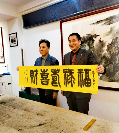 2018年12月,受邀参加“中国·新加坡·马来西亚书画名家巡回展”,篆书作品“天朗气清,惠风和畅”获得金奖,新加坡政府颁发了“新中文化特使”荣誉勋章。