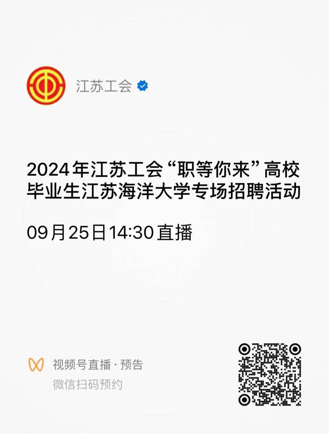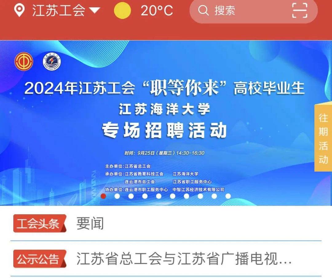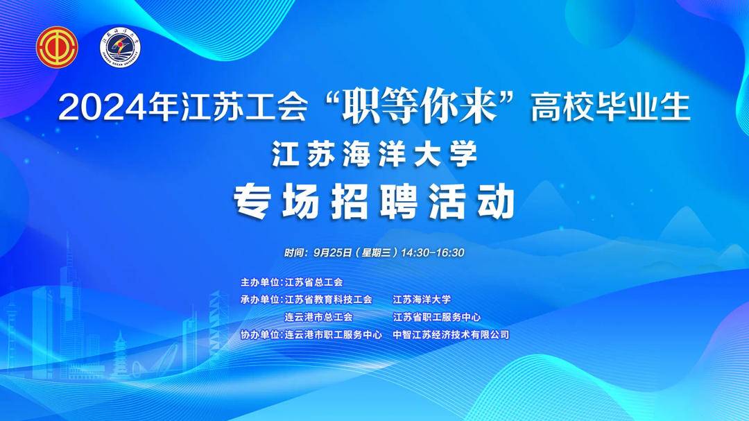 2024年江苏工会“职等你来”高校毕业生专场(江苏海洋大学)招聘活动,9月25日 (星期三)正式启动。