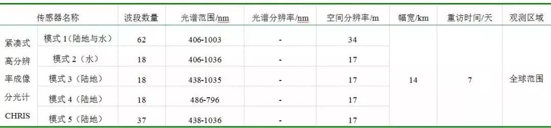 . {8 @6 N8 {. T0 \. Q! g 表6 不同模式下CHRIS数据特性