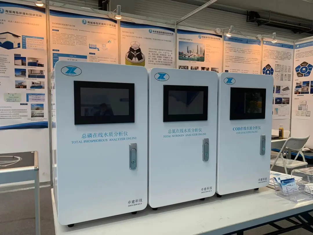 此次我院作为参展商展示了一套在线监测设备(包括COD/高锰酸盐/氨氮/磷酸盐/硅酸盐/总磷/亚硝酸盐/总氮在线水质分析仪、水质悬浮物过滤仪)。 , u3 g: e6 ?1 M! F# Q